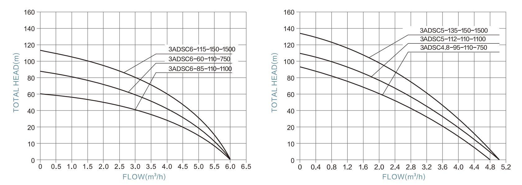 | 3ADSC5-112-110-1100 | 85V-280V | 110V-350V | 1100W | 5m³/h | 112m | 1.25" | 2m | <430V | ≥1.3*PUMP POWER |