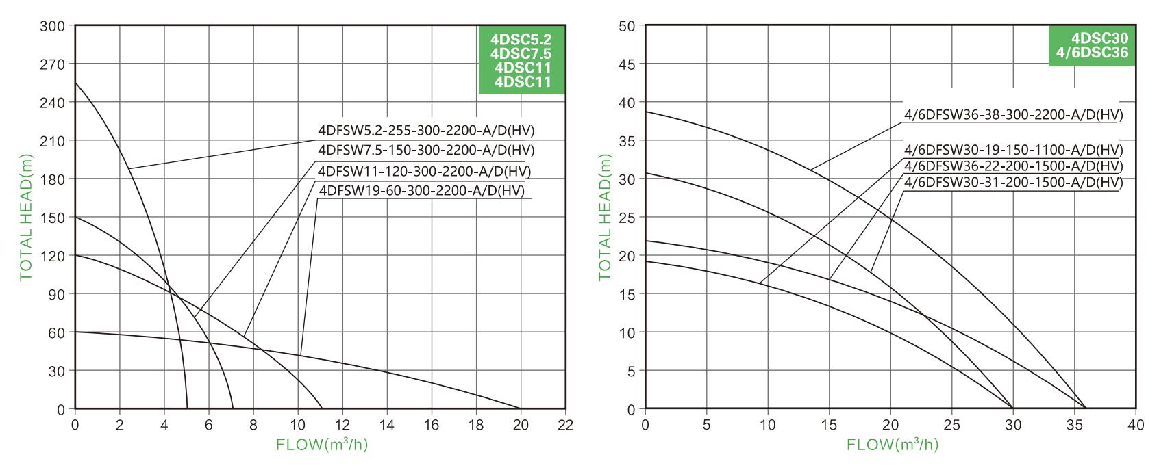 | 4/6DFSW36-38-300-2200-HV | / | 80V-430V | 2200W | 36m³/h | 38m | 3" | 2m | <430V | ≥1.3*PUMP POWER |