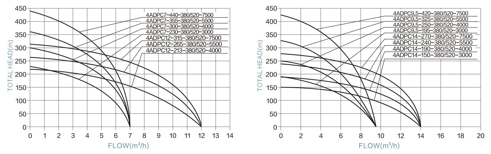 | 4ADPC9.5-420-380/520-7500 | AC380/DC520V | 520V-650V | 7500W | 9.5m³/h | 420m | 2" | 2m | <780V | ≥1.3*PUMP POWER |