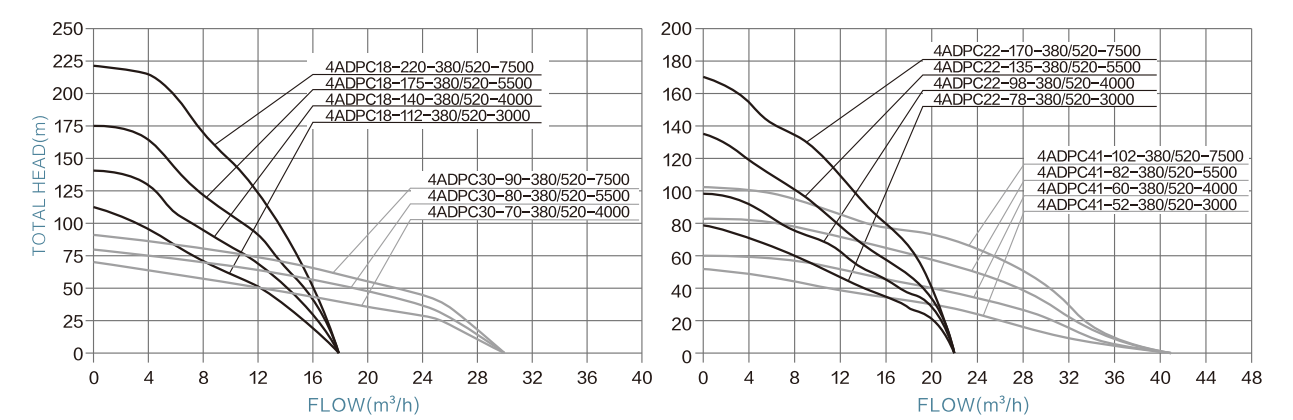 | 4ADPC18-220-380/520-7500 | AC380/DC520V | 520V-650V | 7500W | 18m³/h | 220m | 2" | 2m | <900V | ≥1.3*PUMP POWER |