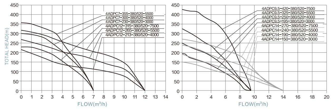 | 4ADPC14-240-380/520-5500 | AC380/DC520V | 520V-650V | 5500W | 14m³/h | 240m | 2" | 2m | <900V | ≥1.3*PUMP POWER |