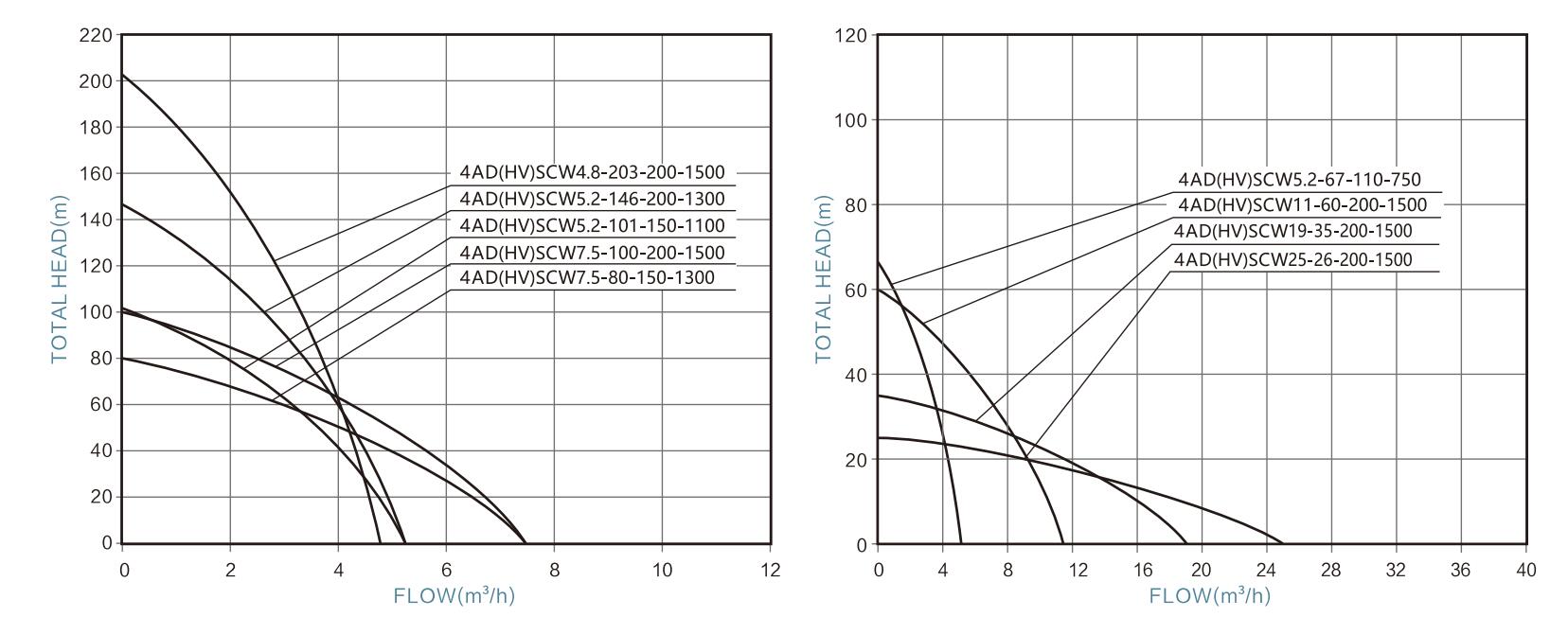 | 4HVSCW19-35-200-1500 | / | 80V-430V | 1500W | 19m³/h | 35m | 2" | 2m | <430V | ≥1.3*PUMP POWER |