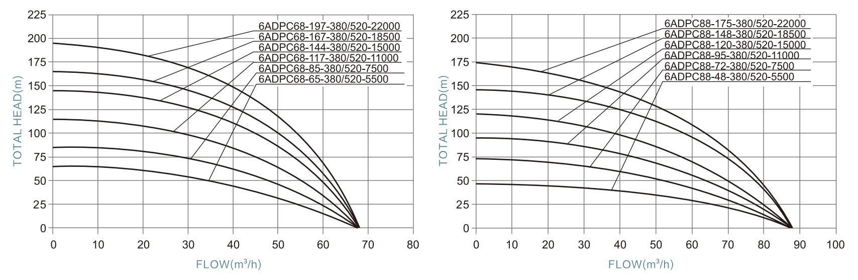 | 6ADPC88-72-380/520-7500 | AC380/DC520V | 520V-650V | 7500W | 88m³/h | 72m | 3" | 2m | <780V | ≥1.3*PUMP POWER |