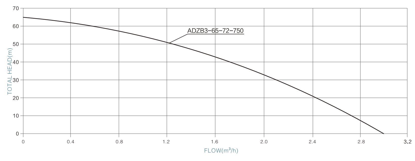 | ADZB3-65-72-750 | 85V-280V | 100V-350V | 750W | 3m³/h | 65m | 1"×1" | 2m | <430V | ≥1.3*PUMP POWER |