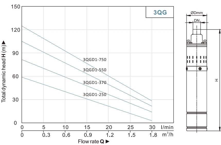 3、Equipped with a 3" diameter, this pump is designed to efficiently draw water from deep wells, ensuring a steady supply for various purposes. Whether it's for domestic use, irrigation, or industrial applications, this submersible pump delivers consistent and reliable performance.