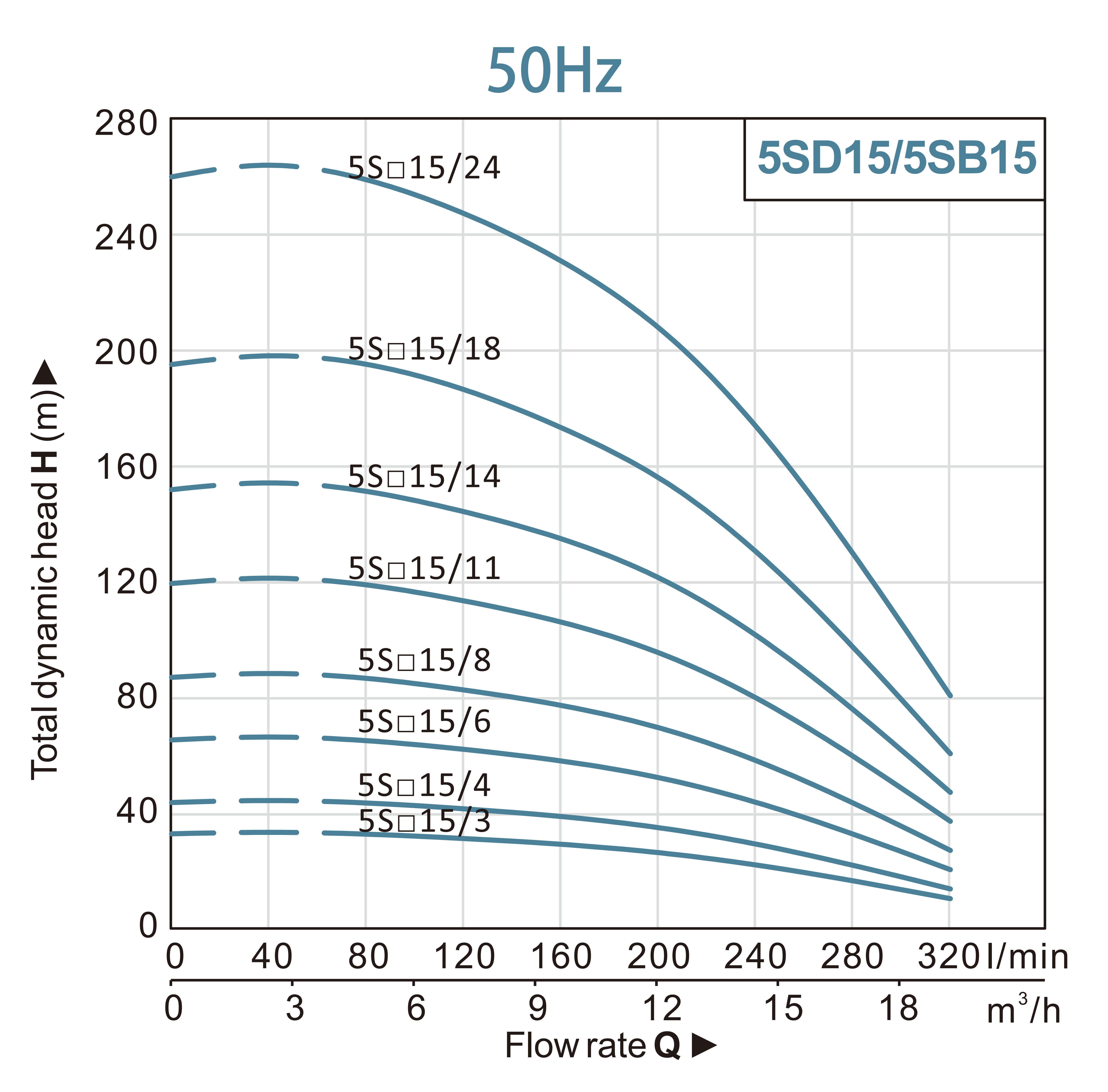 | 3~220/380V | KW | HP | Q(m³/h) | 0 | 3 | 6 | 9 | 12 | 15 | 18 | 21 | 24 |