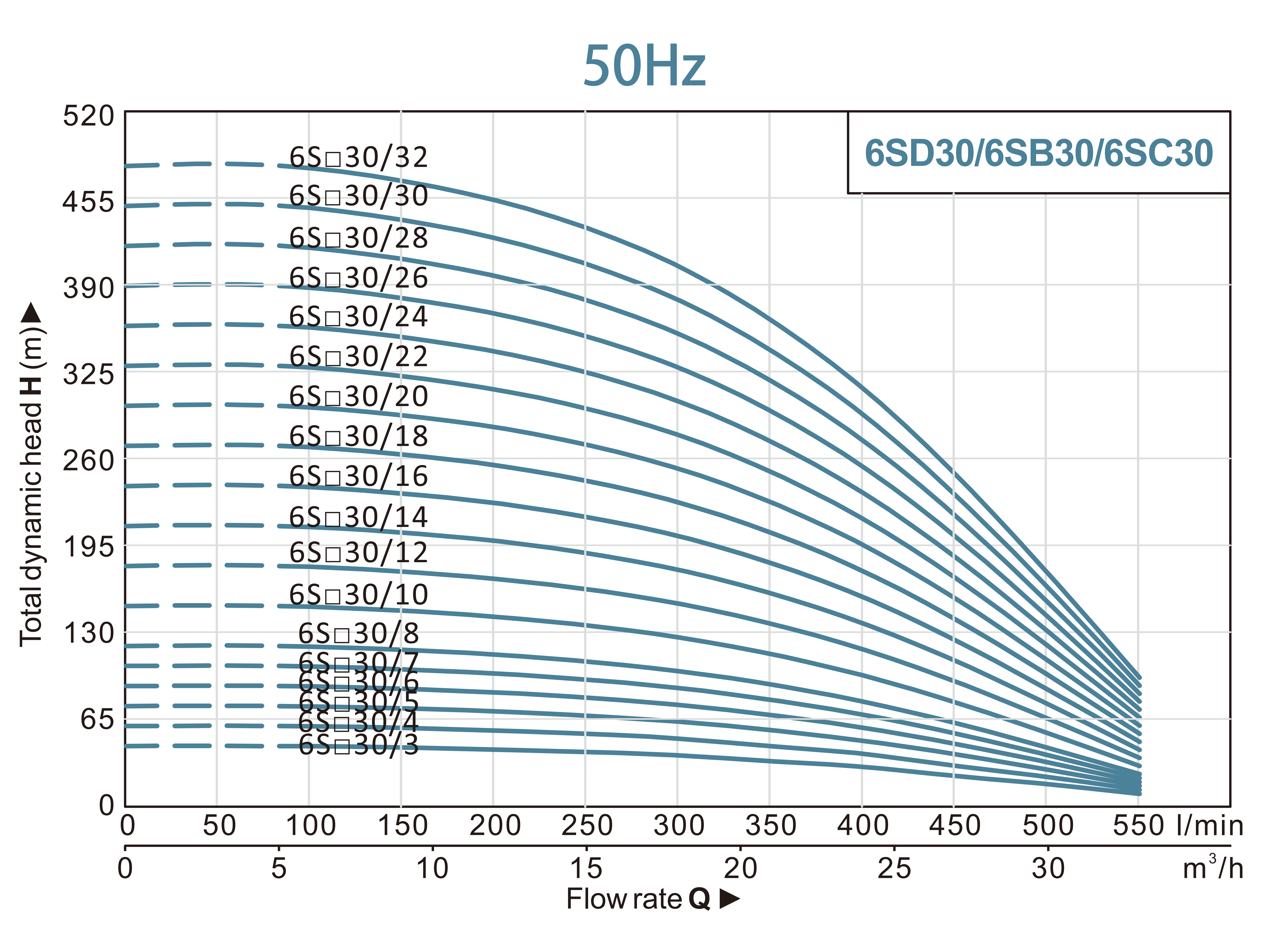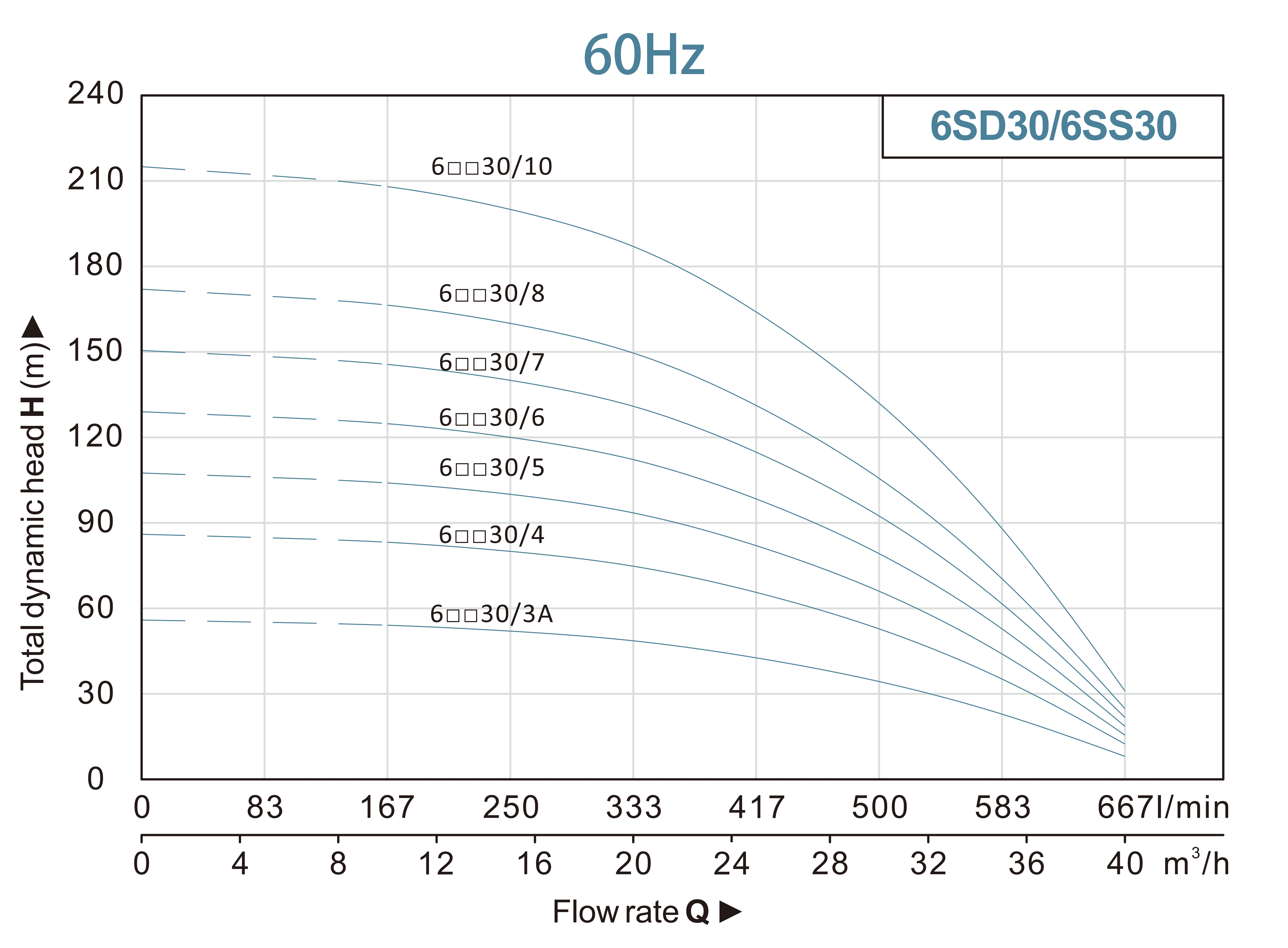 | 6S□M30/3 | 6S□30/3 | 3 | 4 | H(m) | 45 | 45 | 45 | 44 | 42 | 40 | 38 | 33 | 29 | 22 | 16 | 9 |