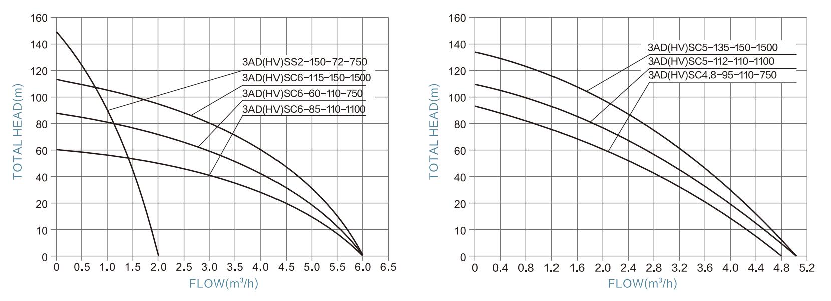 | 3ADSC6-60-110-750 | 85V-280V | 110V-350V | 750W | 6m³/h | 60m | 1.25" | 2m | <430V | ≥1.3*PUMP POWER |