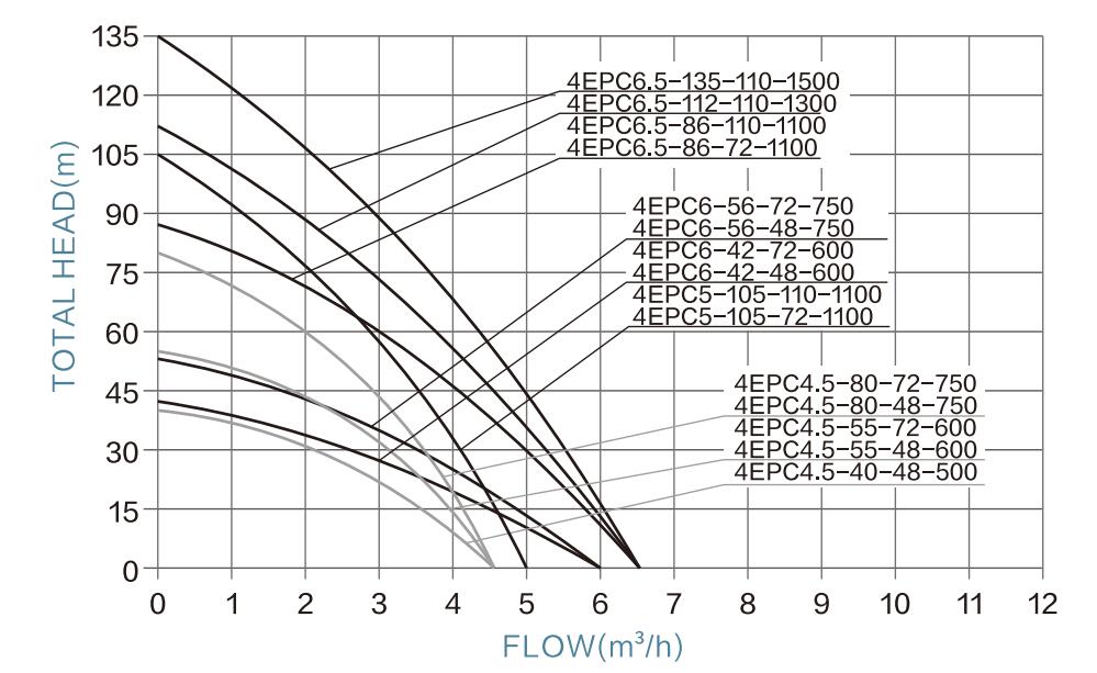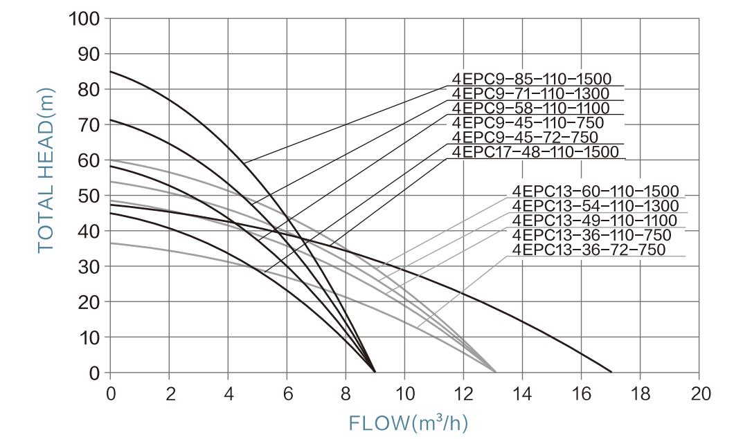 | 4EPC13-36-110-750 | 110V | 110V-150V | 750W | 13m³/h | 36m | 2" | 2m | <220V | ≥1.3*PUMP POWER |