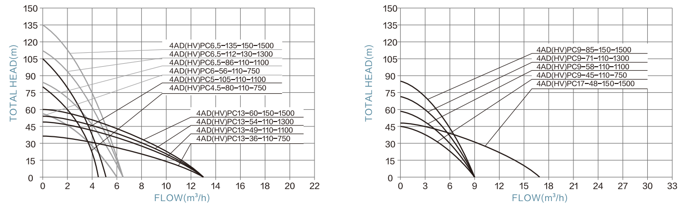 | 4HVPC9-45-110-750 | / | 110-350V | 750W | 9m³/h | 45m | 2" | 2m | <450V | ≥1.3*PUMP POWER |