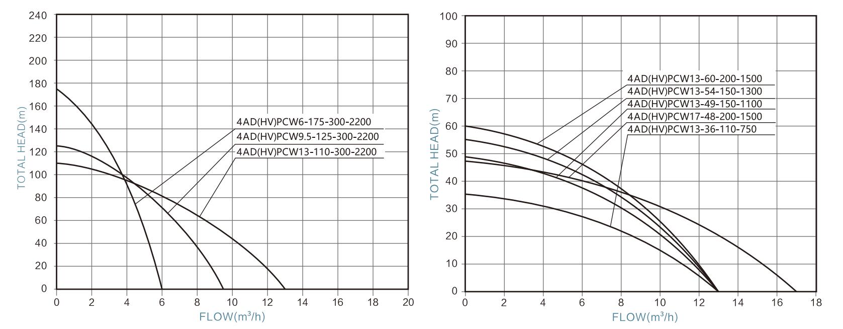| 4HVPCW13-36-110-750 | / | 80V-430V | 750W | 13m³/h | 36m | 2" | 2m | <430V | ≥1.3*PUMP POWER |