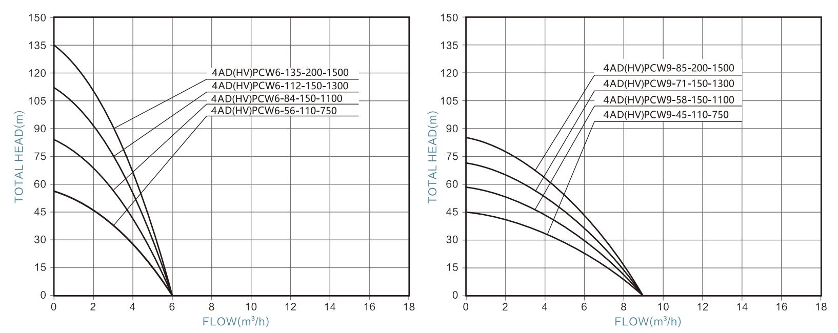 | 4HVPCW9-45-110-750 | / | 80V-430V | 750W | 9m³/h | 45m | 2" | 2m | <430V | ≥1.3*PUMP POWER |