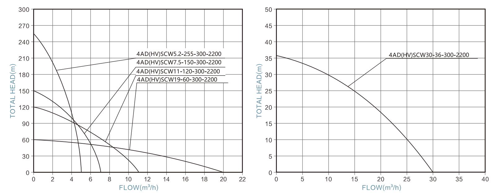 | 4HVSCW30-36-300-2200 | / | 80V-430V | 2200W | 30m³/h | 36m | 2" | 2m | <430V | ≥1.3*PUMP POWER |