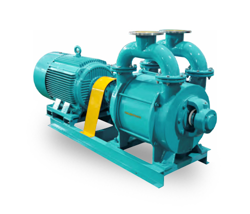 Model 2SK is double stages liquid ring vacuum pump.The liquid-ring vacuum pump compresses gas by rotating a vaned impeller within a cylindrical casing . Liquid ( usually water ) is fed into the pump , and by centrifugal acceleration , forms a cylindrical ring moving against the inside of the casing . This liquid ring creates a series of seals in the space between the impeller vanes which form compression chambers . The eccentricity between the impeller's axis of rotation and the casing geometric axis results in acyclic variation of the volume enclosed by the vanes and the ring . Gas , often air , is drawn into the pump through an inlet port in the end of the casing . The gas is trapped in the compression chambers formed by the impeller vanes and the liquid ring . The reduction involume caused by the impeller rotation compresses the gas , which reports to the discharge port in the end of the casing . Compressed gas on discharge of pump contains certain amount ofworking liquid which is usually removed in the vapor-liquid separator.