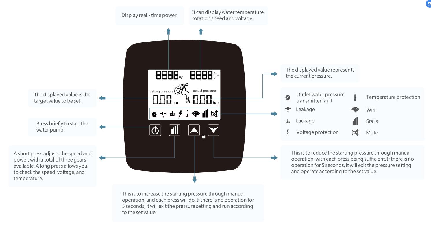 One-click Pressure Regulation: Features a simple and beautiful operation interface for one-click pressure adjustment, with IP54 protection allowing direct outdoor use.