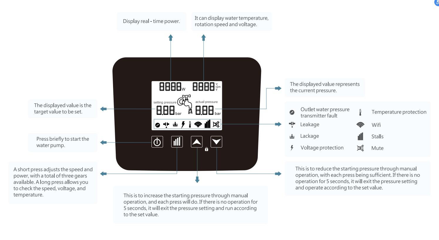 Anti-Water Hammer Design: Integrates a non-return water structure and high-quality sensors, effectively eliminating water hammer, ideal for water tower, hot water, and whole-house pressure boost systems.