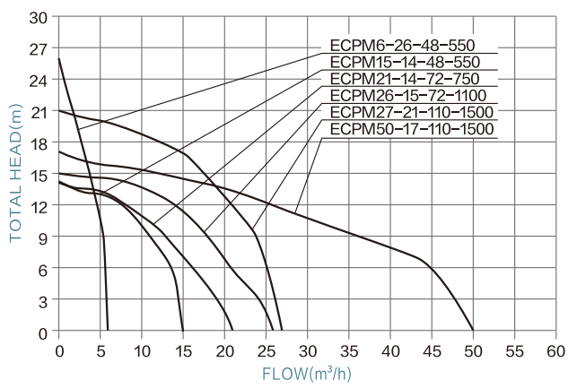 | ECPM6-26-48-550 | 48V | 60V-90V | 550W | 6m³/h | 26M | 1" | 0.6m | <120V | ≥1.3*PUMP POWER |