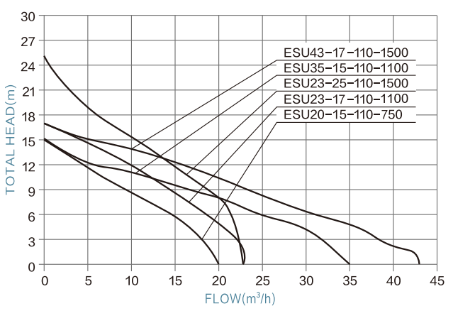 | ESU43-17-110-1500 | 110V | 110V-150V | 1500W | 43m³/h | 17m | 3" | 0.6m | <220V | ≥1.3*PUMP POWER |