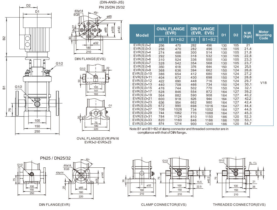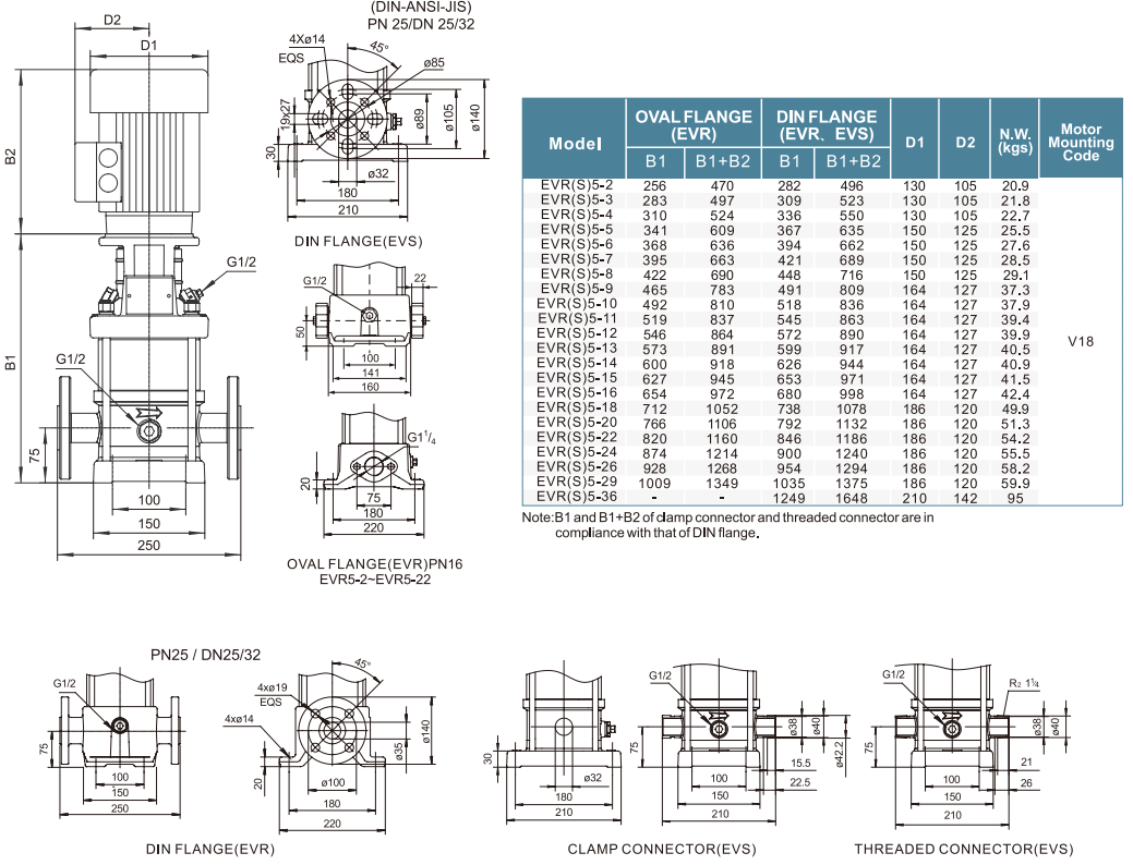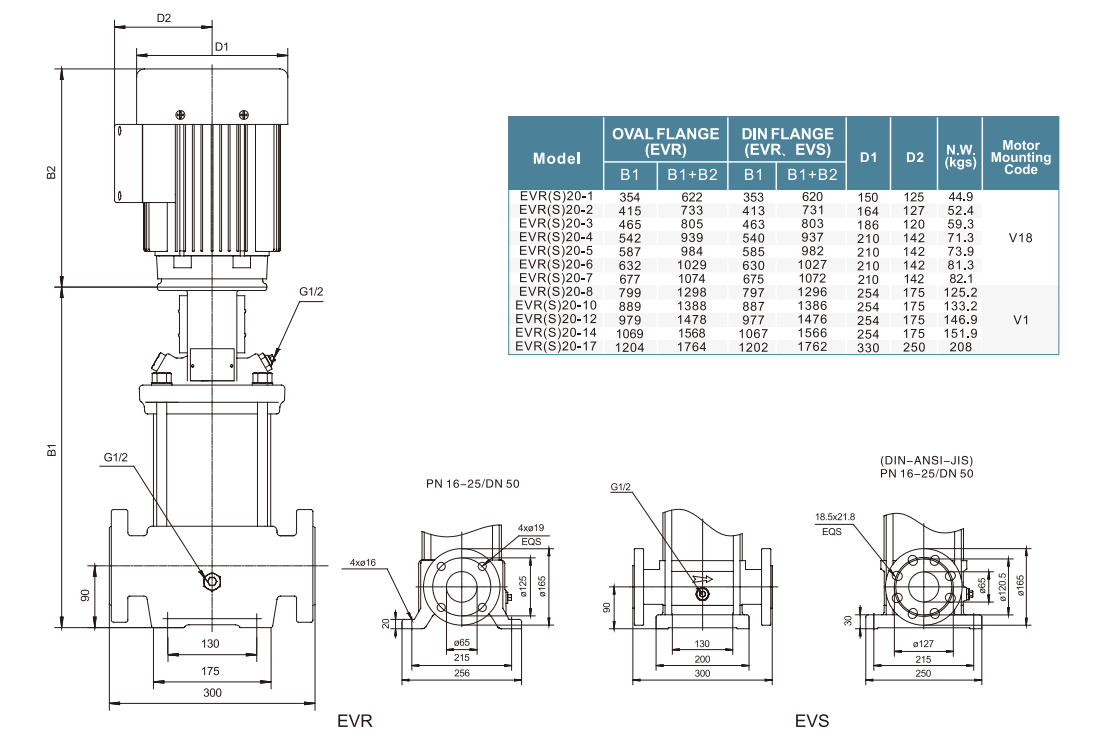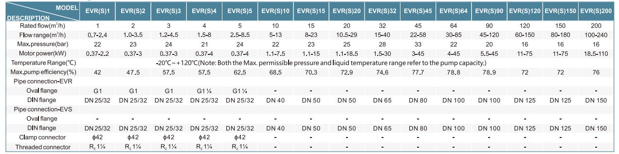 | EVR(S)200-1-D | 18.5 | H(m) | 25.5 | 25 | 24 | 23 | 21.5 | 20 | 18 | 15.5 |