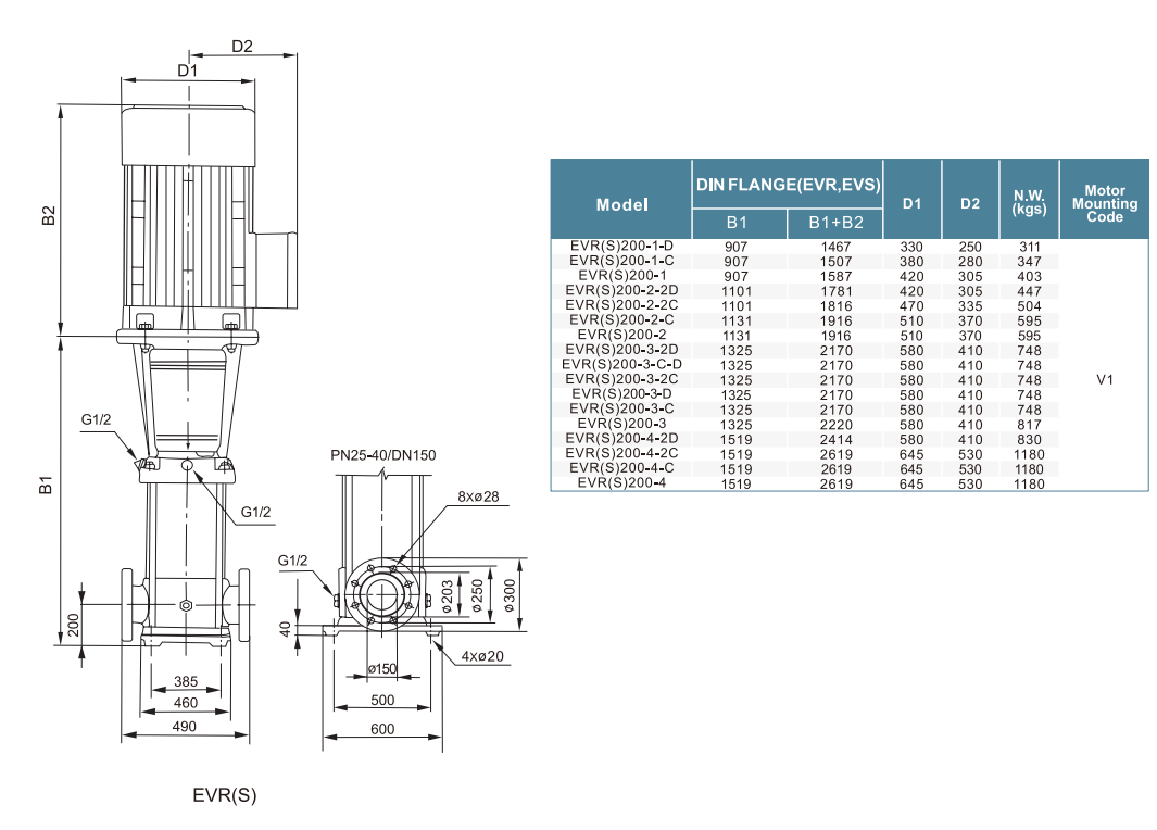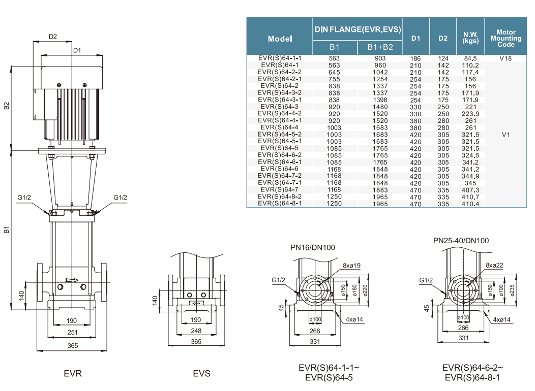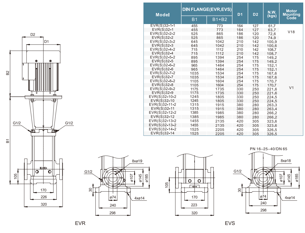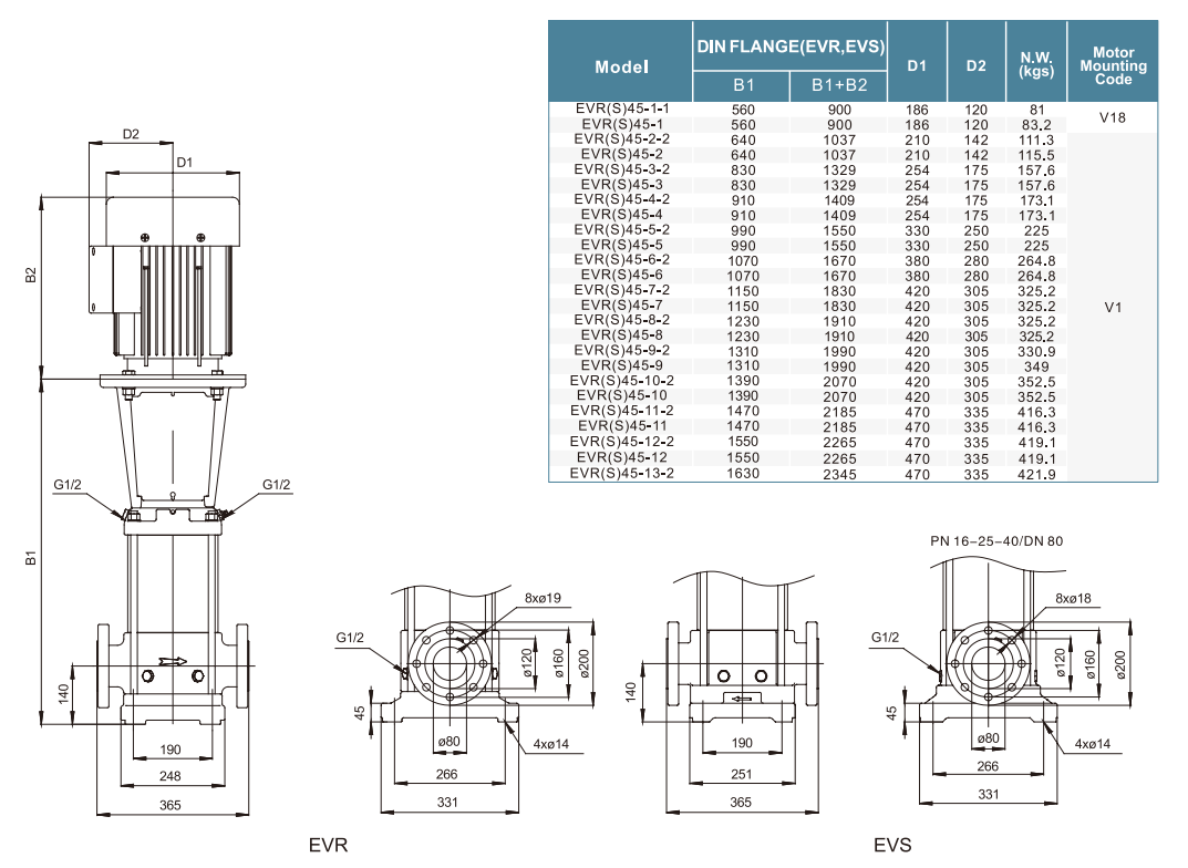 | EVR(S)200-4-2D | 90 | 131.5 | 129 | 125.5 | 121 | 115.5 | 110 | 103.5 | 94 | |
