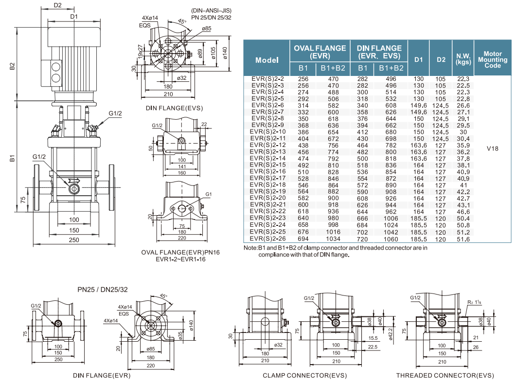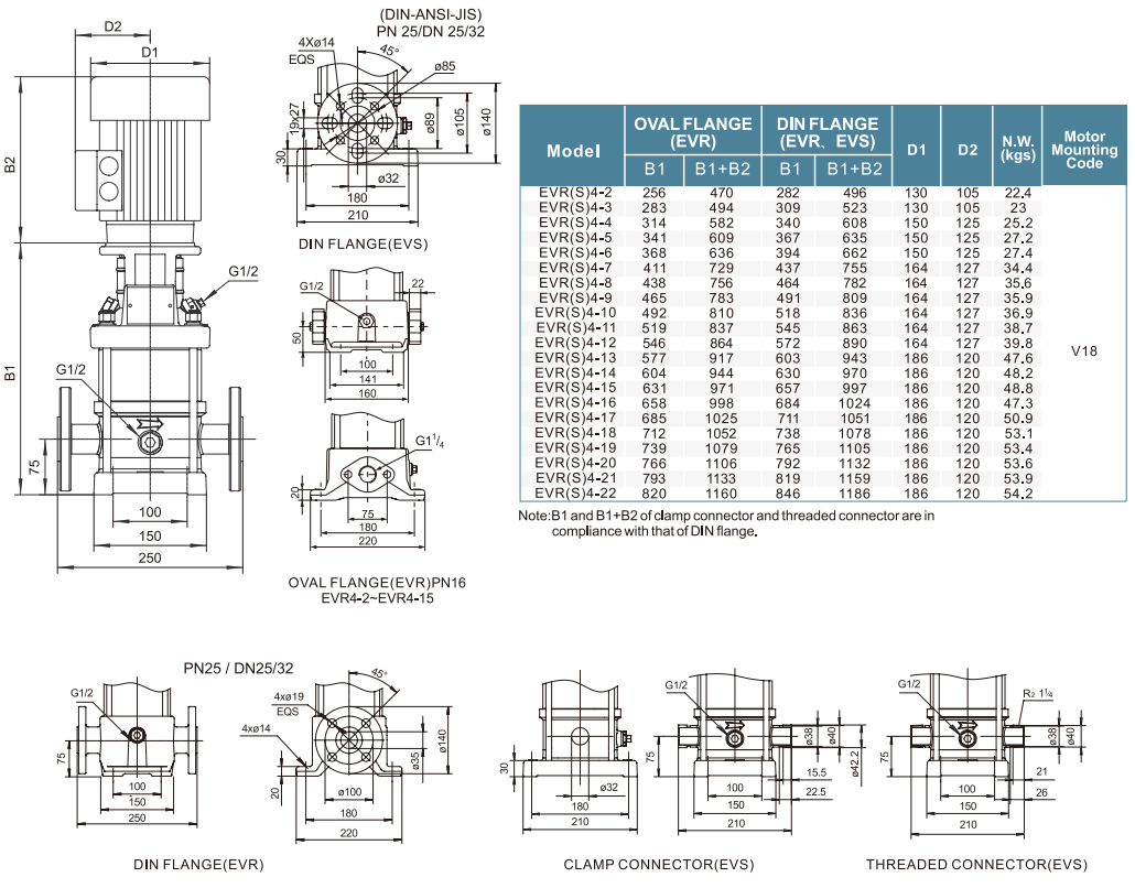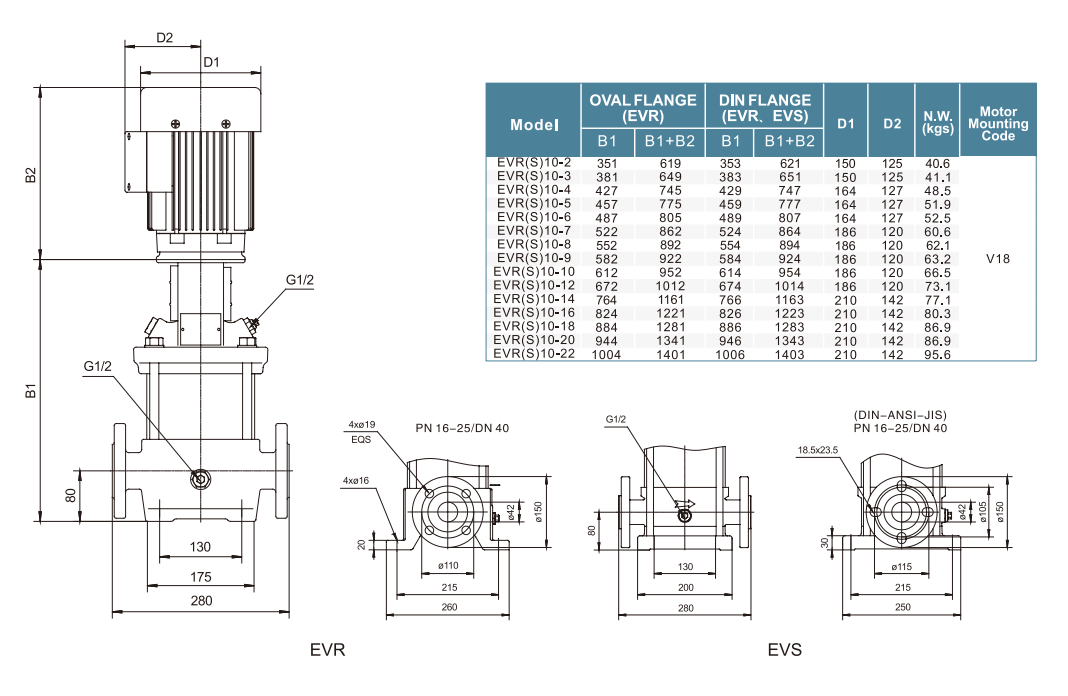 | EVR(S)150-2-1 | 22 | 44.3 | 43 | 42 | 40 | 39 | 38.5 | 37.5 | 35 | 33 | 30 | 27 | |