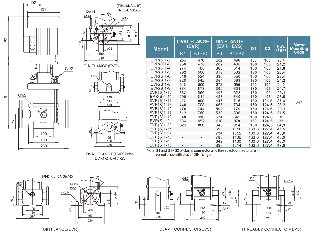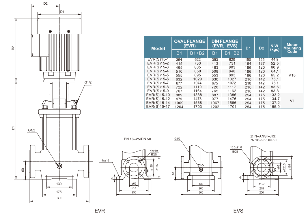| EVR(S)150-2-2 | 18.5 | 37 | 35.5 | 34 | 33 | 32 | 31 | 29 | 27.5 | 26 | 23 | 21 | |