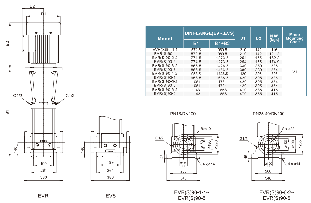 | EVR(S)90-1-1 | 5.5 | H(m) | 22 | 21 | 20 | 18 | 16 | 14 | 10.5 | 6.5 | - |