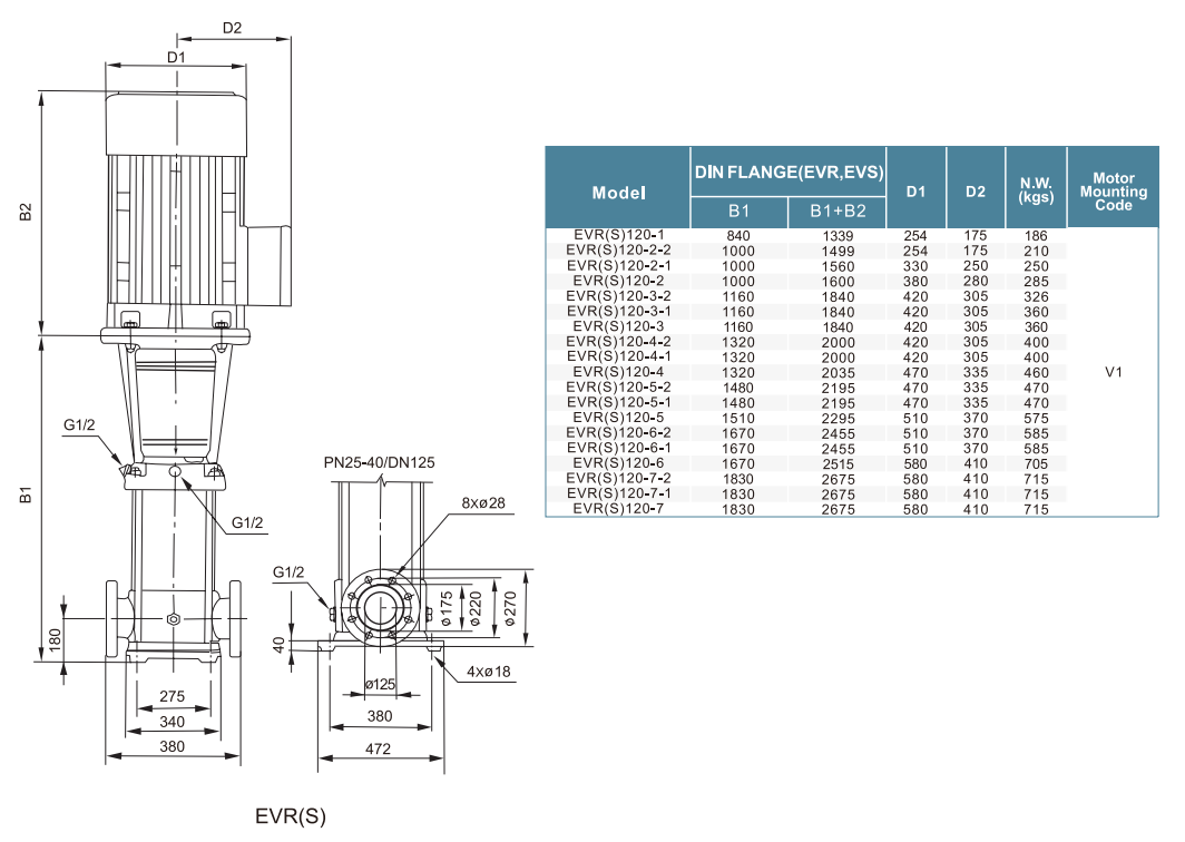 | EVR(S)120-7-1 | 75 | 156.5 | 154 | 152 | 148.5 | 144.5 | 141 | 137.5 | 130 | 123 | 116.5 | |